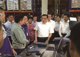 2015年4月俄速通CEO于航和向前人大委员长张德江汇报跨境电商物流发展情况 |