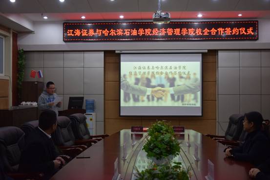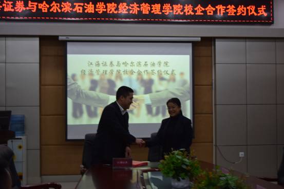 据悉,江海证券作为黑龙江省辖区内唯一一家国有控股券商,集聚了一批年轻化、专业化的优秀人才,拥有一支具备博士、硕士学历和丰富实践经验的管理团队,是省内较大的券商企业。从今年上半年开始,经济管理学院一直通过校企合作方式,引导教师、学生深入到企业现场,为学院教学改革,学生实习、就业提供了平台。