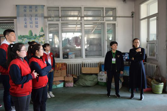 黑龙江省“一家衣善”物资基地主任姜洪艳对大家的到来表示热烈欢迎并进行了活动安排,带领大家参观了物资基地,详细介绍了回收衣物的处理过程。