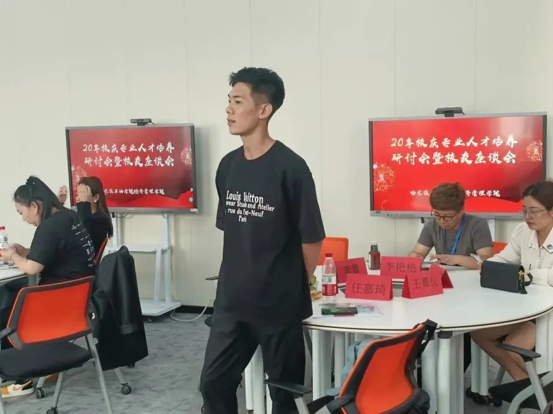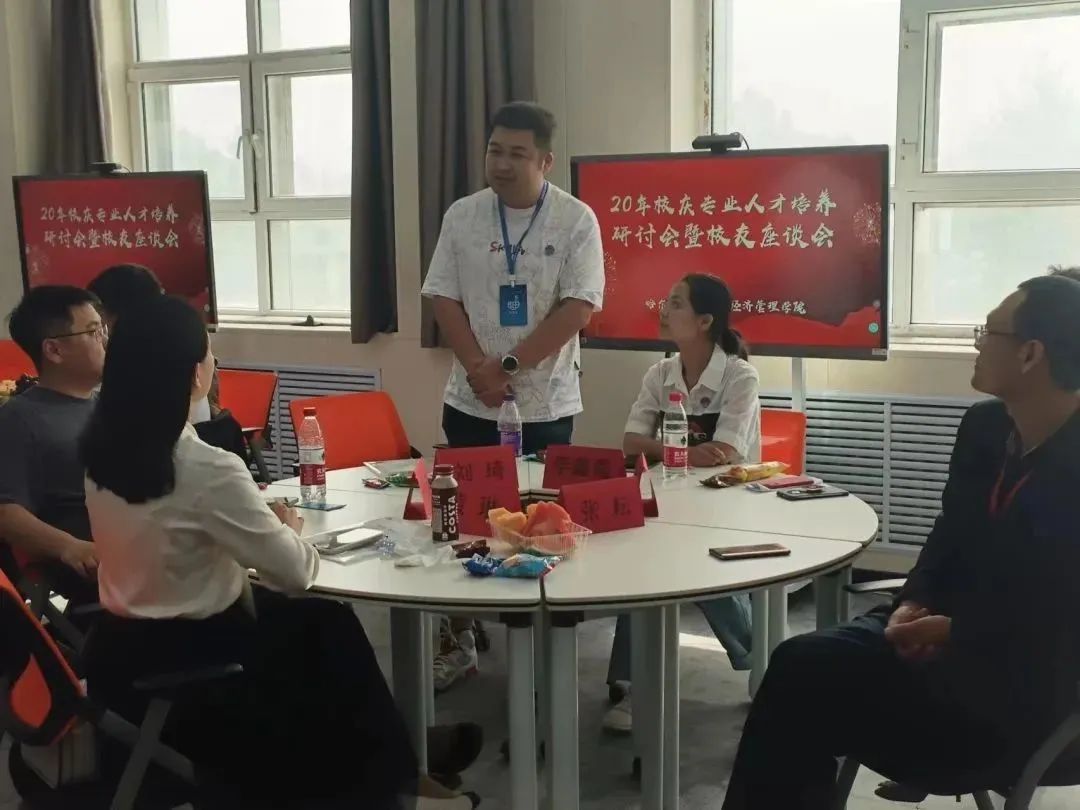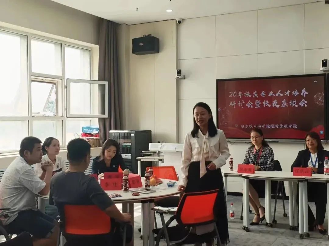 为庆祝伟德bv国际体育建校二十周年,9月8日,经济管理学院在第一教学楼213教室召开建校20周年校友代表座谈会,邀请各地校友代表,欢聚哈油校园,共叙母校情谊,共谋母校发展。经济管理学院院长任洪云、经济管理学院党总支书记吴东爽、继续教育学院院长张耘、副院长郑彩飞、党总支副书记陈志勇、团总支书记邱晨明、院长助理宋蕾、各系主任以及优秀校友代表出席本次座谈会。