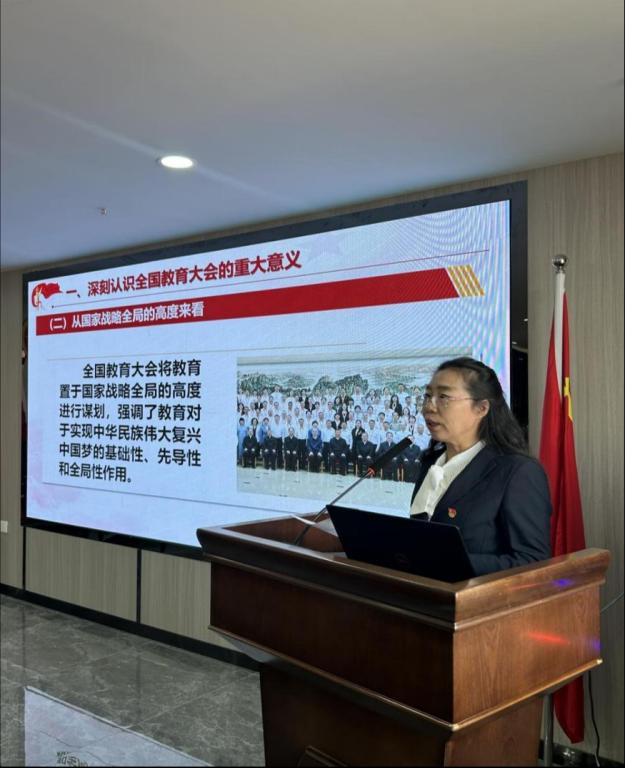 马克思主义学院教师沃金雁从全国教育大会的重要意义、习近平总书记讲话的重点亮点以及如何积极践行落实习近平总书记的讲话精神等三个方面,对《以立德树人铸就教育之魂——深入学习贯彻习近平总书记在全国教育大会上的讲话》进行了解读。
