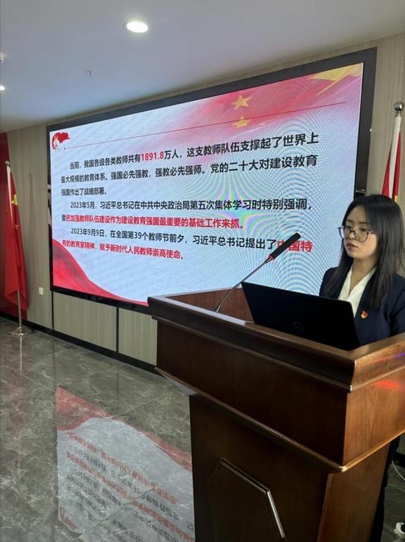 马克思主义学院教师王增彦主要从出台《意见》的重要意义、《意见》的主要内容、《意见》的亮点和落实《意见》的实践要求等四个方面对《中共中央国务院关于弘扬教育家精神加强新时代高素质专业化教师队伍建设的意见》进行了深入的解读。