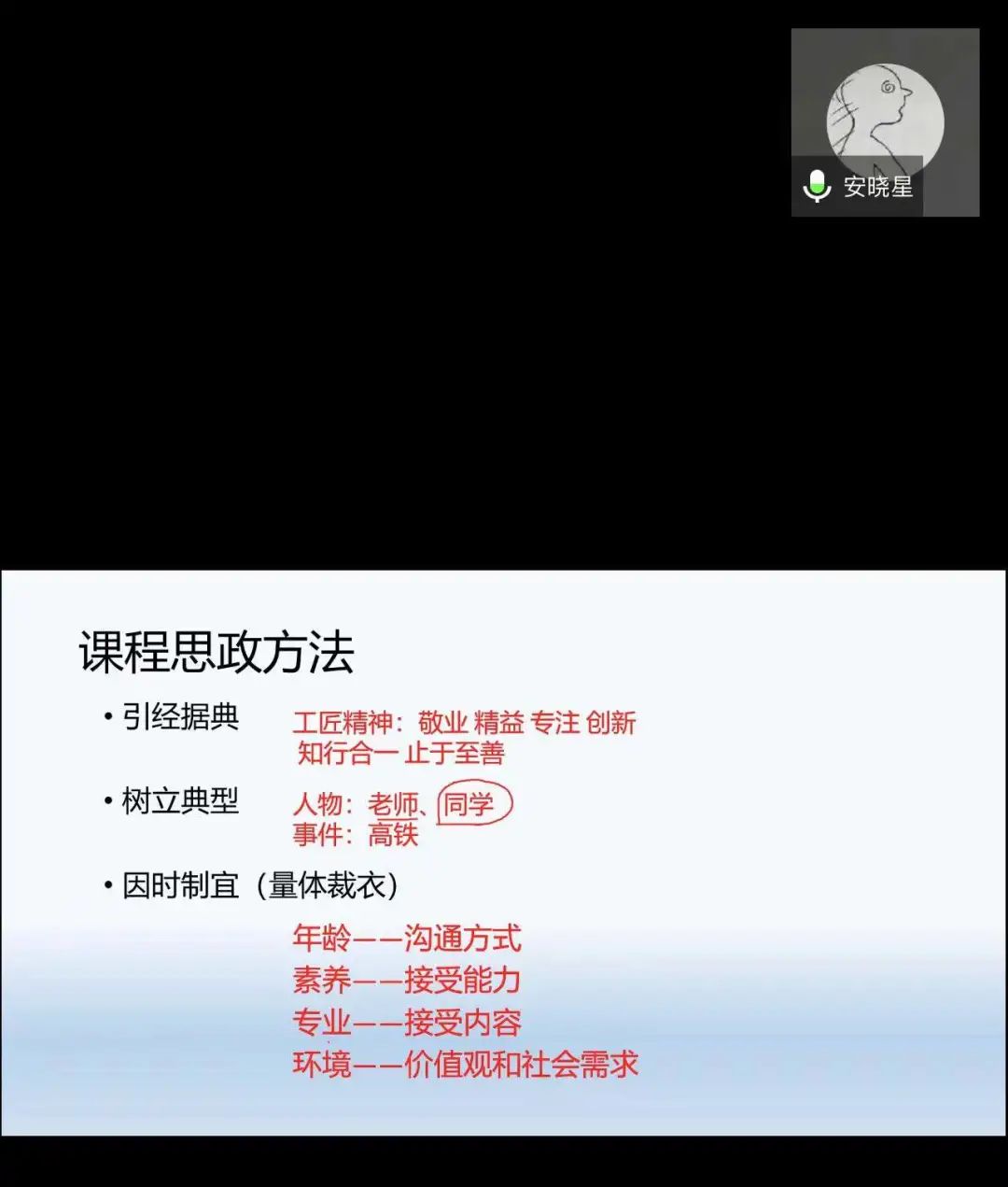 首先,院长助理荆明野强调了思政课程的重要性,鼓励大家运用实际工程案例,挖掘更多的课程思政元素,更好地提升教学质量和教学效果。其次,五位骨干教师崔艳、贾志强、安晓星、贾丽梅、刘晓晖,根据自身所授课程内容,结合具体案例进行了思政教学的分享。
