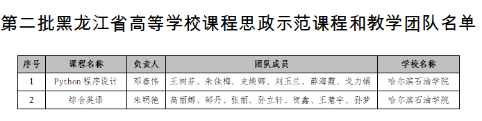 近日,黑龙江省教育厅发布《关于第二批黑龙江省高等学校课程思政示范项目名单的公示》,伟德官网2门课程入选黑龙江省高等学校课程思政示范课程和教学团队。