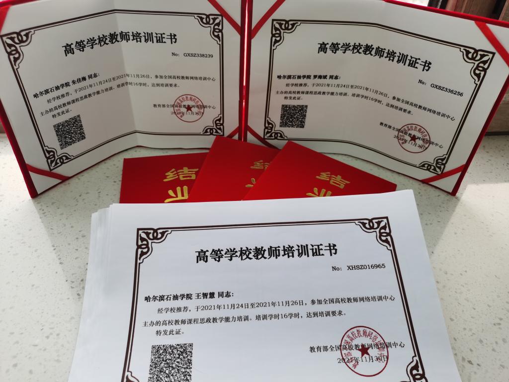本次培训采取学校统一报名和教师自主报名相结合,全体参训教师分散学习的方式进行。学校教师教学发展中心积极组织,过程跟进,强化效果;各教学单位教师踊跃报名学习,其中石油工程学院、化学工程学院、信息工程学院、经济管理学院、学前教育学院、艺术学院等报名学习率较高,达85%以上。最终参训学员有167人获得结业证书,超出了省里规定的4.8倍。