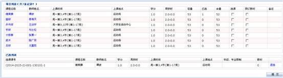 弹出板块下对应的体育项目信息,在对应项目后选课复选框选中后点“提交”按钮