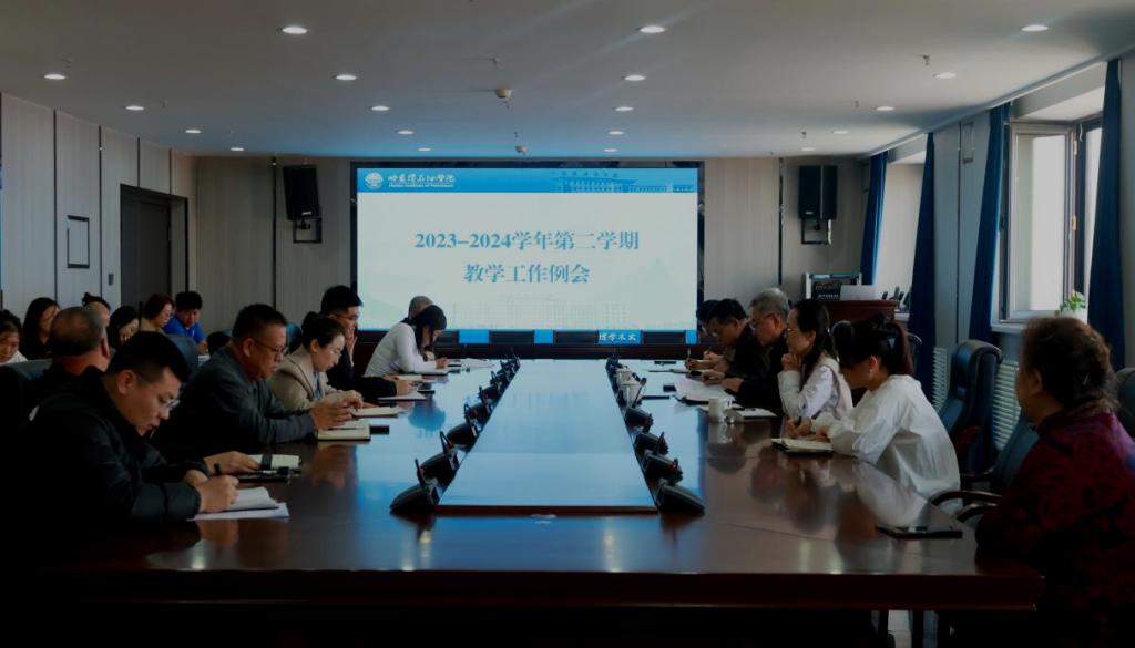 3月26日下午,学校于综合楼1515会议室召开教学工作例会。校长王义宁、副校长胡文,各教学部门院长(主任)、副院长(副主任)、教务处全体人员参加会议。会议由副校长胡文主持。