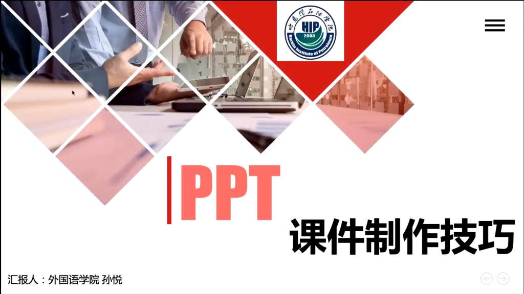 3月22日下午,学校组织开展了“PPT制作技巧与经验交流”培训会。会议由教务处副处长周微主持,全校200余名教师参会。会议分别邀请黑龙江省高校青年教师多媒体课件制作大赛获奖教师孙悦、何佳两位教师分享PPT制作技巧和经验。