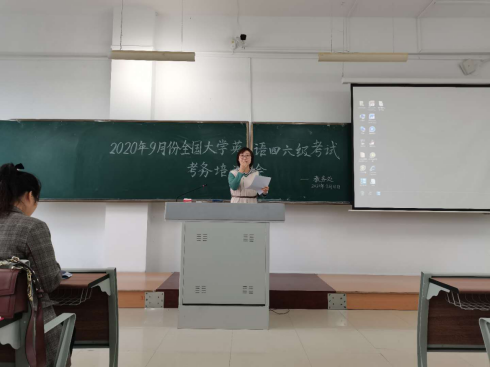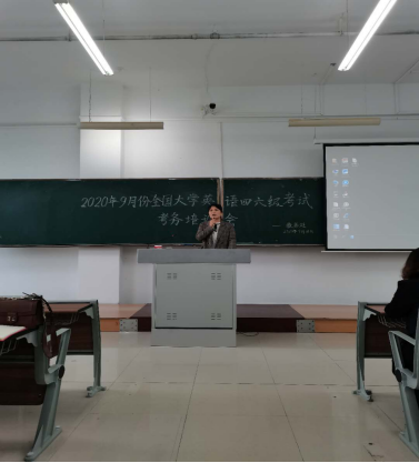 为确保所有涉考工作人员熟练掌握考务要求,保障2020年9月全国大学外语四、六级考试顺利进行,2020年9月18日下午,学校教务处组织召开监考教师考务培训会。教务处长张耘、副处长周微、教务处全体人员以及全体监考教师、考务人员参加了本次培训会议。