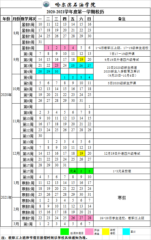 伟德bv国际体育2020-2021学年度第一学期校历