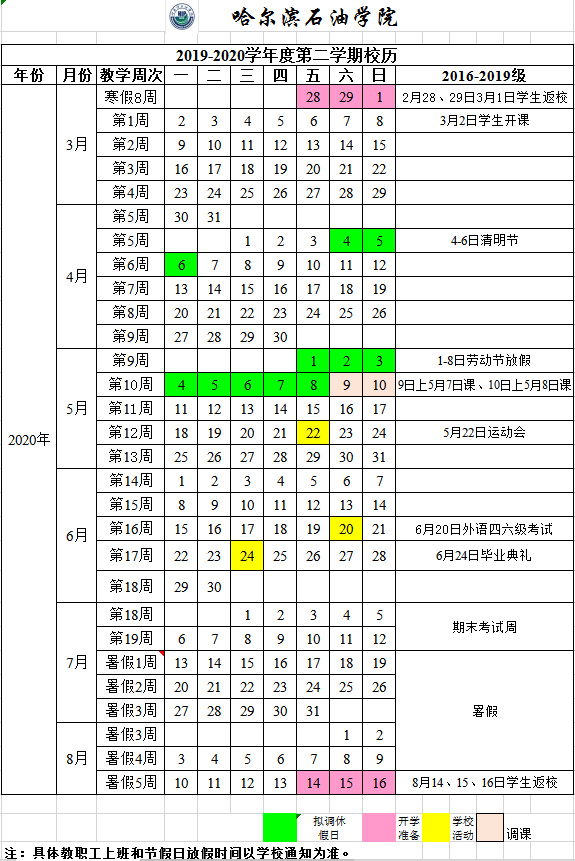 伟德bv国际体育2019-2020学年度第二学期校历