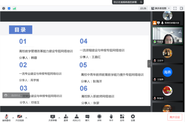 最后张蒙老师根据高校新入职教师培训内容提出自己的感悟和体会:培训内容包括师德师风、“四史”教育、教学理念、教学能力、信息技术应用等五个模块的必修课和教研学术、科研学术、学习指导、专业发展与职业规划四个模块的选修课及思政师德大讲堂直播课程。