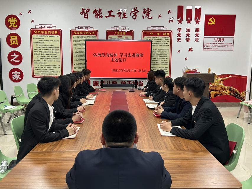 为深入学习习近平新时代中国特色社会主义思想,贯彻落实党纪学习教育,大力弘扬劳模精神、劳动精神、工匠精神,引导支部成员成为有理想、有担当、能吃苦、肯奋斗的新时代好青年。根据《伟德bv国际体育2024年主题党日活动工作提示》文件要求,2024年5月16、17日,智能工程学院学生第一党支部、学生第二党支部、学生第三党支部分别在主教学楼414开展“弘扬劳动精神,学习先进楷模”主题党日活动。活动分别由学生第一党支部书记迟航、学生第二党支部书记吕博萱、学生第三党支部书记戚伟同主持,全体学生党员参加。