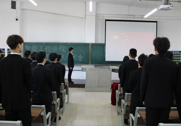 会议伊始,主持人花耀登台,激昂的中华人民共和国国歌随之响起,全体与会人员起立,共同唱罢国歌,智能工程学院第一次学生代表大会正式拉开帷幕。
