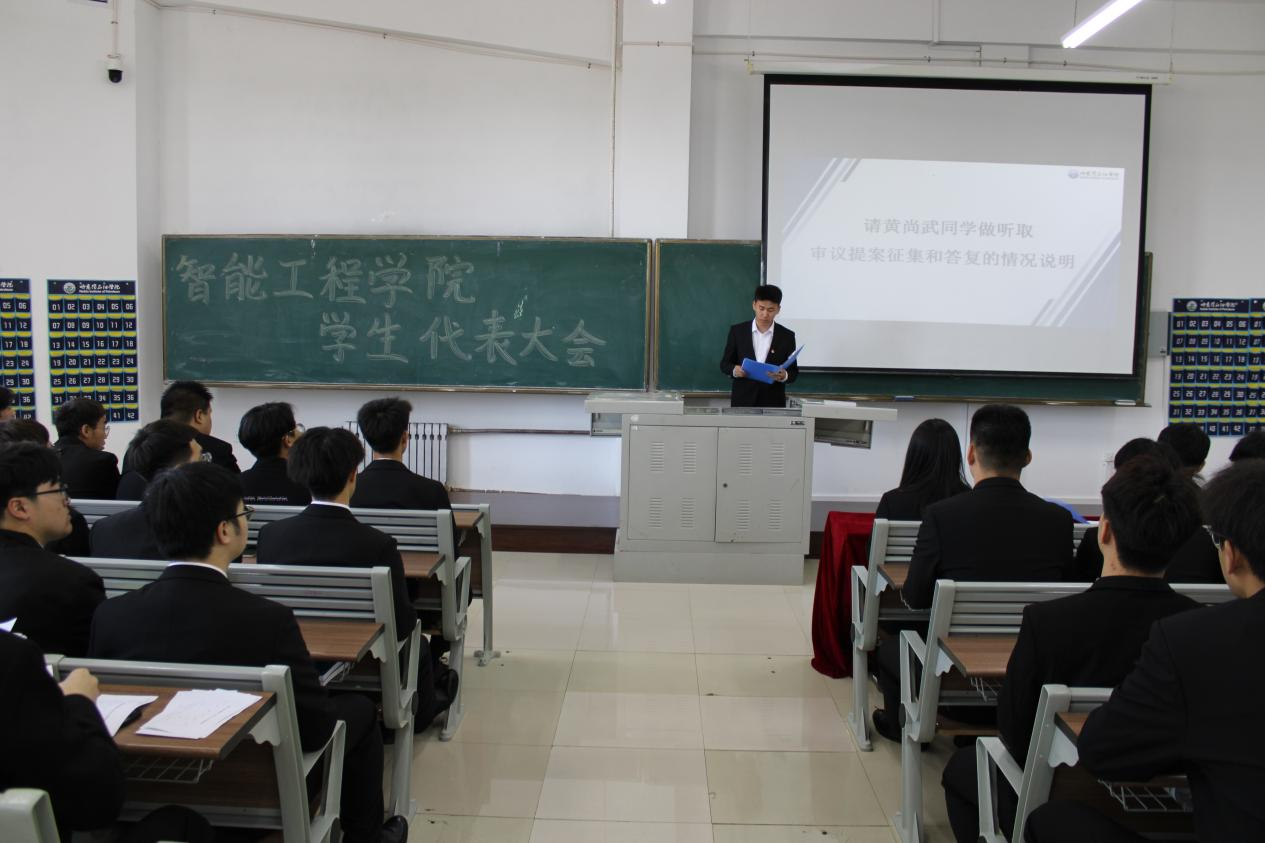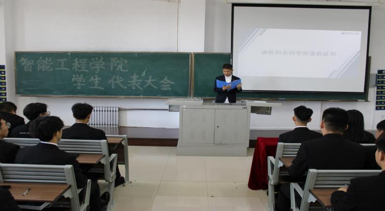 学生代表李皓然同学宣读伟德bv国际体育智能工程学院学生会代表的产生和构成方法。
