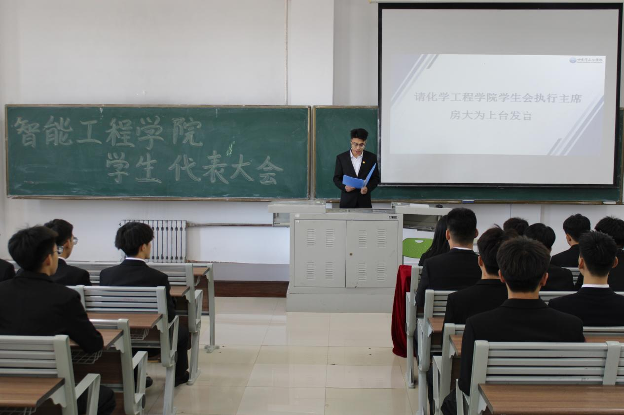 紧接着,化学工程学院学生会执行主席房大为上台发言,他首先对智能工程学院首次学生代表大会的召开表示热烈祝贺,并分享了化学工程学院学生会在组织建设、活动开展等方面的经验和成果,为智能工程学院学生会的工作发展提供了宝贵的经验。