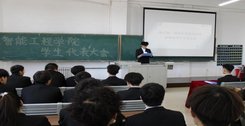 为深入贯彻学生思想政治教育,推进学院学生会改革走深走实,发挥学生干部特色优势,凝聚学生力量,提高学生的综合素质,切实开展好学生教育管理工作,智能工程学院第一次学生代表大会于2024年5月16日12时在第一教学楼401教室顺利召开,智能工程学院学生会执行主席季宇欣及70名学生代表参加本次会议,智能工程学院党总支副书记徐靖宇对本次会议内容进行指导。