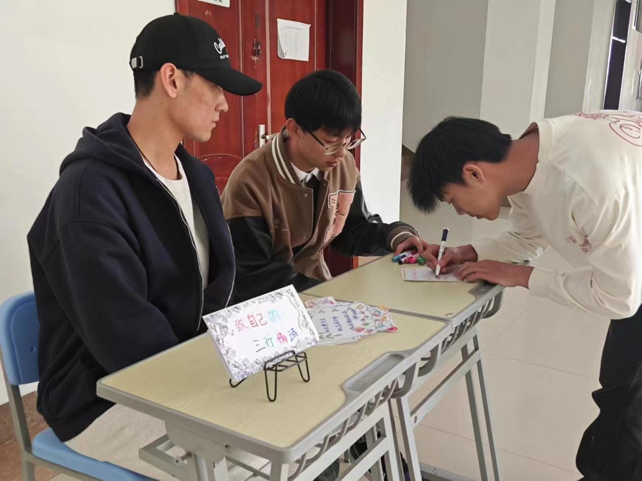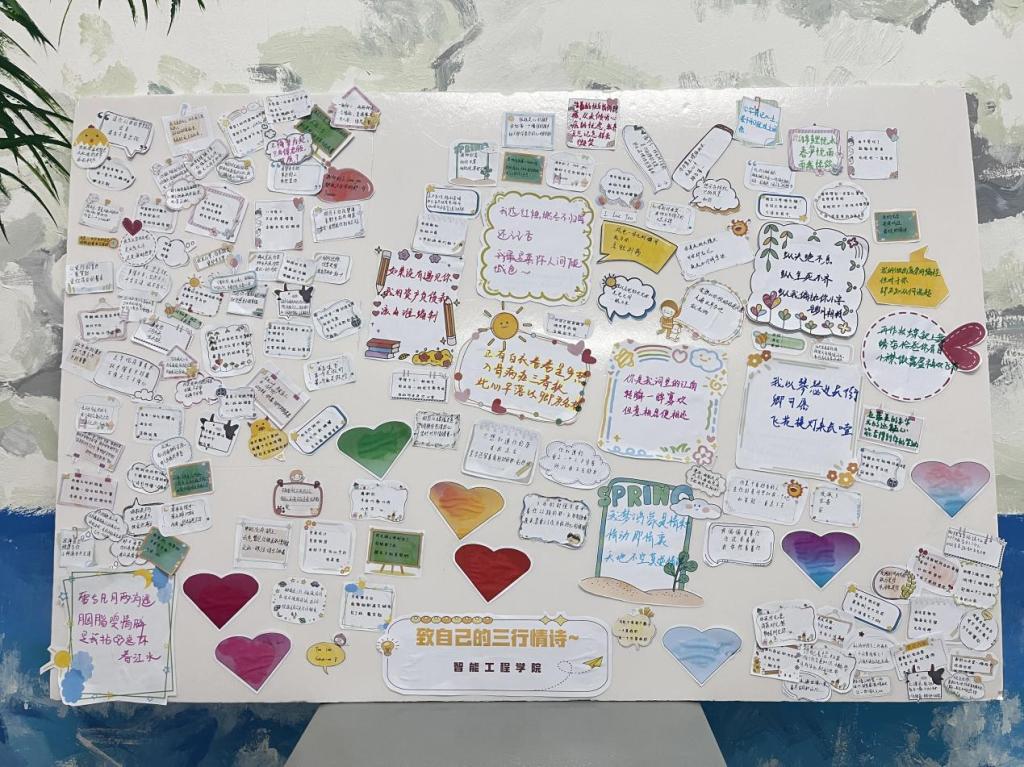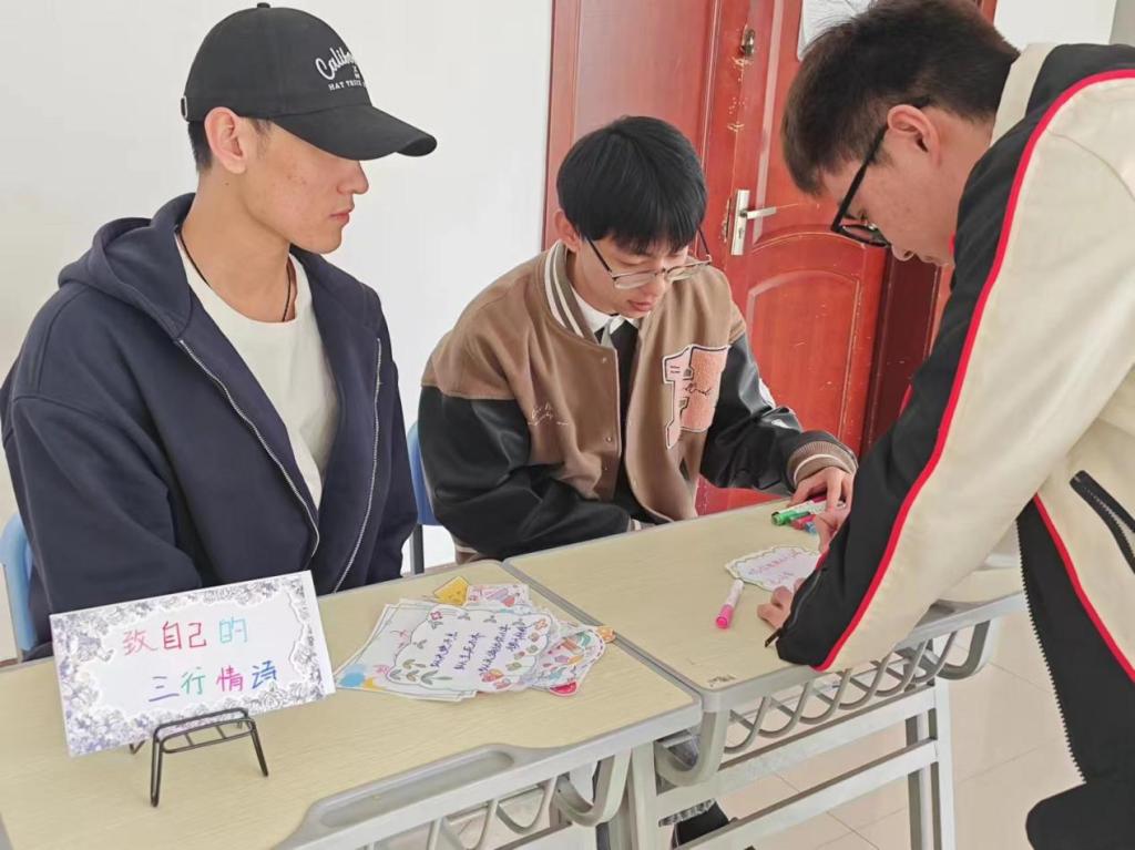 为了进一步丰富校园文化生活,展示校园校园风采,发挥学生才华能力。智能工程学院于2024年5月6日—7日在主教405组织学生们举办“致自己的三行情话”心理活动。让同学们找到人生方向,勇敢面对生活的种种磨难。我院学子通过三行情书的方式来激励自己,在字里行间里流露出细腻情绪与豪情壮志,带给我们真切的感动与激励。