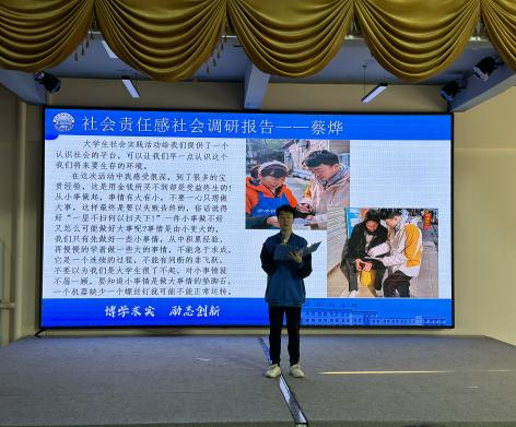 本次报告会集中展示了学院优秀实践者们的实践成果与成长体悟,同时涉及了红色宣讲、志愿活动、乡村振兴、民生调研等多个方面,每位同学利用了短短的五分钟时间,详尽讲解了自身感悟,展现了我院学子的青春风采。