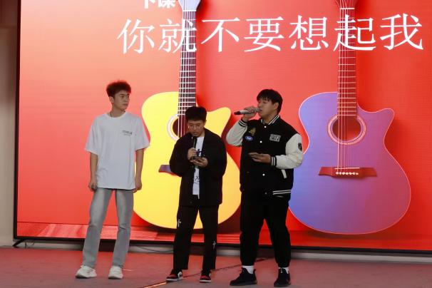 本次活动为团队对抗赛,由四个组织代表以及贾晓晨老师作为评委进行打分,选手们分为四组进行随即停歌接唱、听前奏猜歌名以及随机歌曲演唱三个环节。张仕宏同学的架子鼓表演将此次比赛拉开帷幕,随后李欣庭同学的舞蹈串烧作为串场节目更是将比赛推至高潮,给大家带来了一场激动人心的视觉盛宴。选手们在舞台上认真思考,积极抢答,秉持着友谊第一,比赛第二的原则,利用丰富的歌曲储备量以及扎实的唱功赢得现场观众阵阵掌声,最后以孙嘉怡同学的吉他弹唱《遇见》完美结束此次大赛。