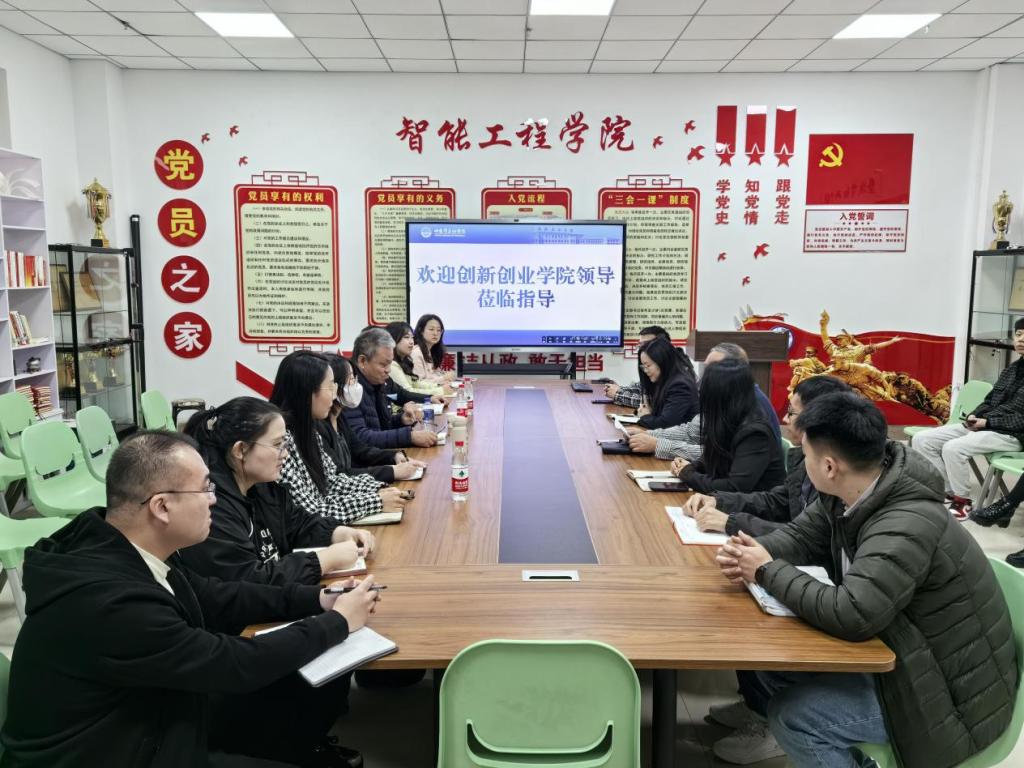 在交流中,创新创业学院院长王滨生教授对智能工程学院提出了宝贵的建议,并鼓励两院加强合作,共同探索创新创业教育的新模式。同时,创新创业学院院长还介绍了学生可参与的各类创新创业竞赛,着重强调了这些竞赛对学生创新能力和实践能力的提升作用。