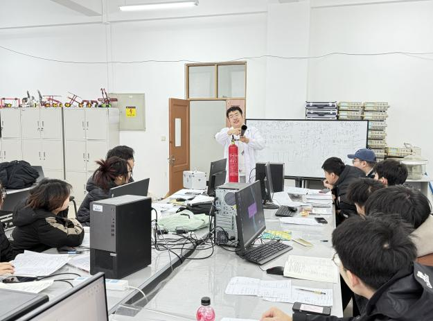 随后,实验楼消防疏散演练正式开始。在预定时间内,模拟发现“火情”,学院立即启动了应急预案,通过警报信号发出疏散指令。师生们按照事先规划好的路线迅速有序地撤离至指定安全区域,整个过程中保持了高度的冷静和秩序。同时,部分师生还使用灭火器尝试控制火势,并等待专业消防队伍的到来。