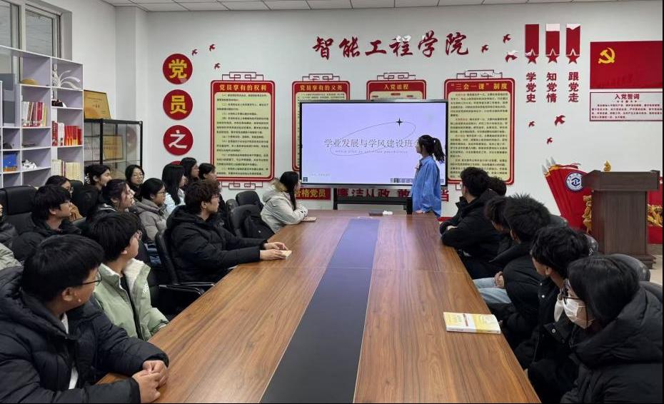 此外,班会还提出了本学期将建立学生学习小组、开展学术交流活动、学业预警帮扶等一系列学风建设新举措,以期促进班级同学间的学术互动,形成积极向上的学习氛围。智能工程学院全体辅导员表示,将不遗余力地助力学生在学风建设与学业发展上的成长,不断完善相关学习制度和辅助性工作,为学生的全面发展提供有力支撑。