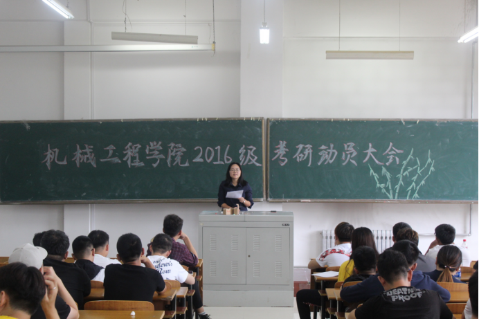 为了提高我院2016级学生的考研积极性,帮助学生找准考研方向,给予指导,提高我院考研率。我院于8月20日中午,在主教204召开机械工程学院2016级考研动员大会。出席会议的有机械工程学院院长王俊发、党总支书记苏永彬、副院长韩蓉、2016级辅导员迟航及2016级全体考研同学。