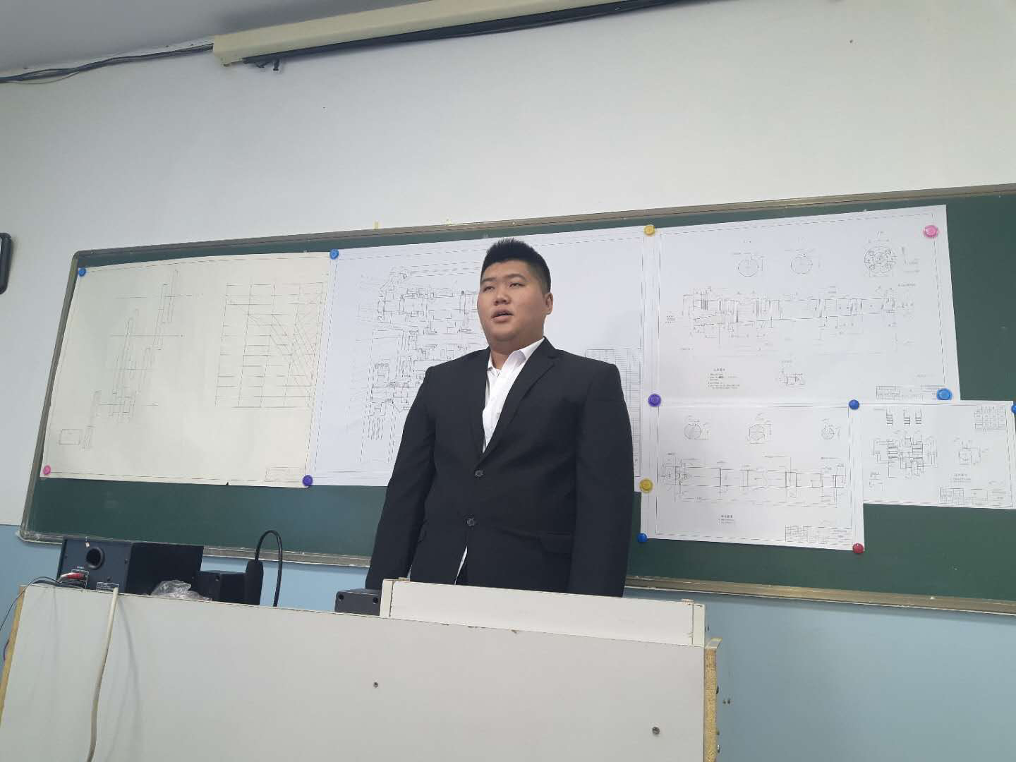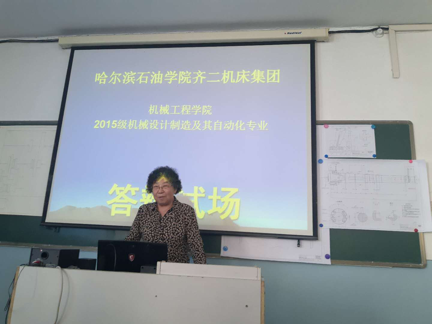 首先,由校总督学、本次答辩组组长于惠力教授讲话。于惠力教授说,学生在企业做毕业设计今年已经是第四年了,每一年学生通过企业老师的指导,都能够出色的完成毕业设计的全部内容,要感谢企业老师的细心指导。从2009年我院学生第一次到齐齐哈尔进行生产实习到今年已经是十个年头,近四年又有了进一步的人才培养合作,感谢齐齐哈尔二机床给对我院学生的培养,希望今后仍然保持密切的合作关系,共同培养理论水平扎实,实践经验丰富的一线工程师。