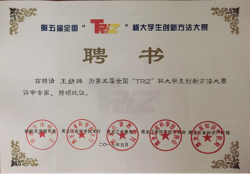 本次大赛是由全国创新方法研究会、黑龙江省科学技术厅、黑龙江省教育厅、黑龙江省科学技术学会和黑龙江省知识产权局联合主办,黑龙江省技术创新方法研究会、黑龙江省科学技术情报研究院、黑龙江省生产力促进中心和哈尔滨工程大学联合承办。伟德官网机械工程学院王妍玮院长被聘为本次大赛的专家评委。