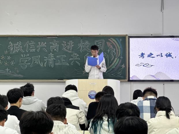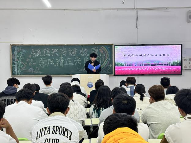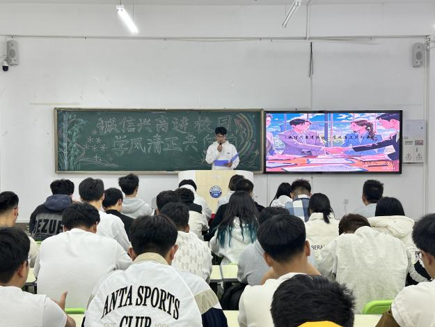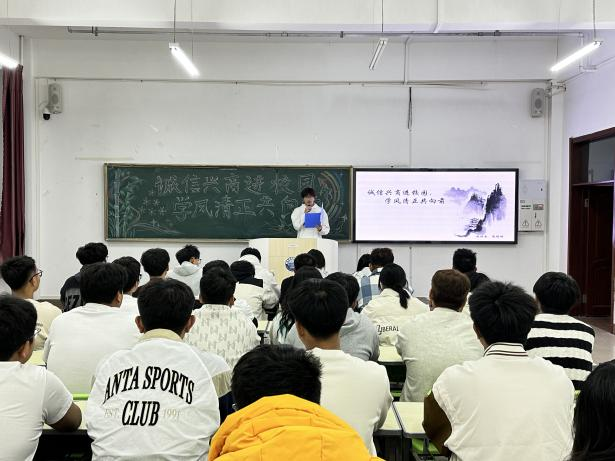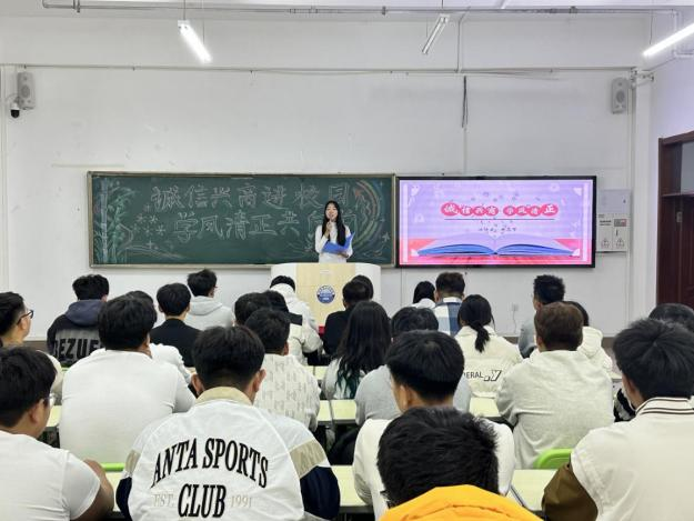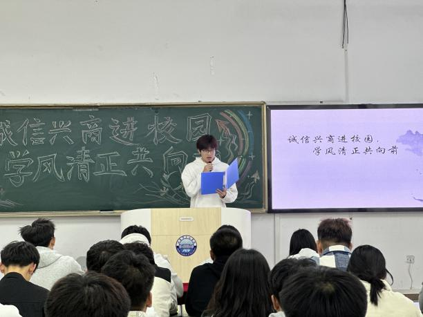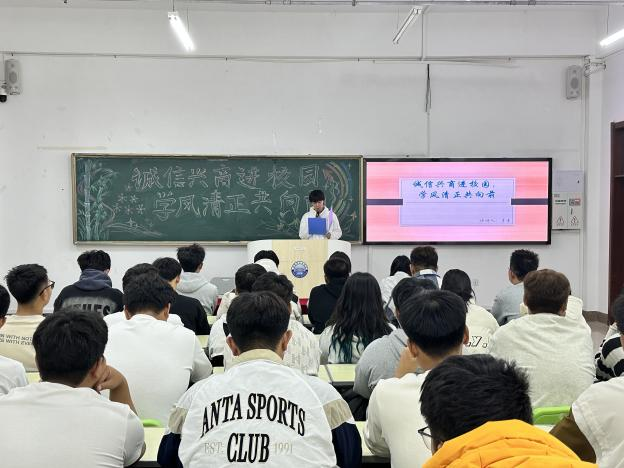 为弘扬诚信精神,倡导正直学风,进一步提升学生的道德素养和综合素质,增强学生的诚信意识,树立正确的价值观,促进学生全面发展。智能工程学院于2024年10月17日晚在一教学楼504教室成功举办以“诚信兴商进校园,学风清正共向前”为主题的演讲比赛活动。