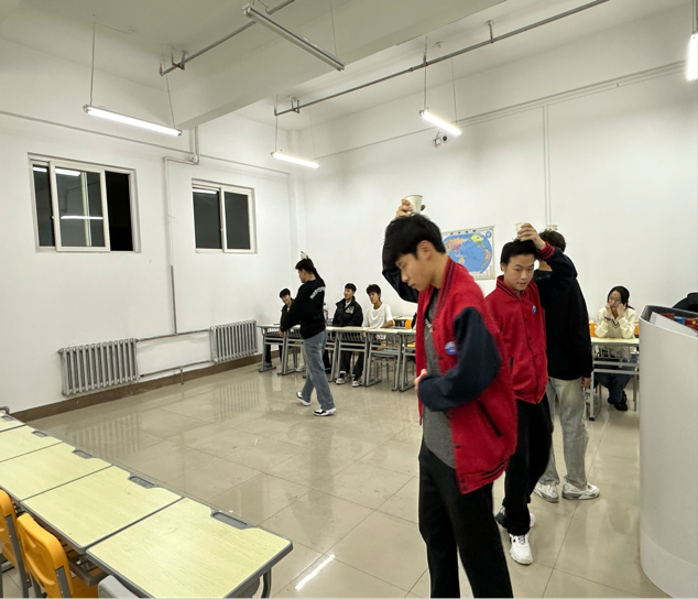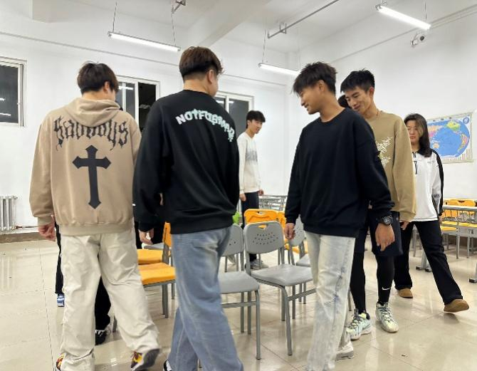 活动伊始,“天旋地转”项目率先登场。该项目考验同学们的身体平衡能力,尽管不少同学在旋转后头晕目眩,但仍凭借顽强的毅力坚持完成比赛,现场观众的加油声此起彼伏。紧接着的便是“背靠背夹球”两两一组的同学们需背靠背将球夹住,同步向前移动。这充分展现了团队成员彼此信任、默契配合的重要性。“抢凳子”项目将活动氛围推向高潮。随着音乐声起,同学们围绕凳子快速绕行,音乐一停,便迅速争抢座位。最后进行的是“袋鼠跳”大家跳跃的姿态各异,有的轻盈敏捷,有的略显笨拙,引得同学们捧腹大笑。