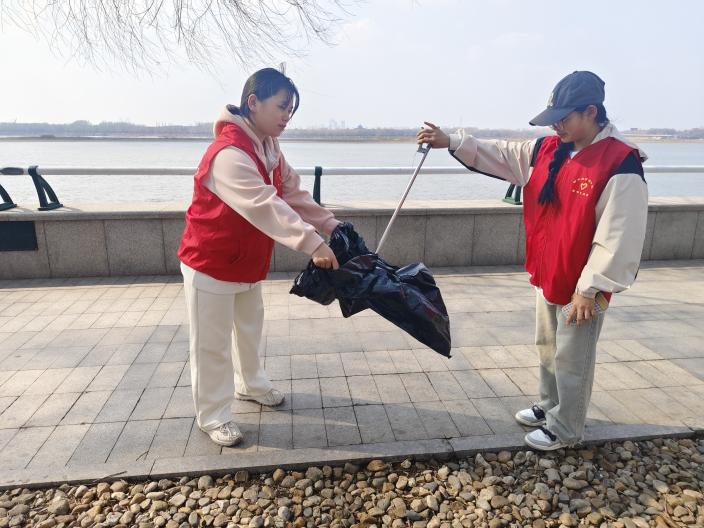 活动伊始,一抹抹“志愿红”在江岸边跃动起来,瞬间成为了江边一道最为亮丽且温暖人心的风景线。志愿者们身着鲜艳的红马甲,犹如春日里盛开的繁花,朝气蓬勃。他们手持垃圾夹、肩背垃圾袋,以严谨认真的态度沿着江畔开启了地毯式清理工作。志愿者们的目光敏锐而专注,不放过任何一处角落。他们穿梭在草丛中、石阶旁,但凡瞥见散落在江边周围的塑料瓶、烟头、碎纸屑,甚至是隐藏在石缝里、被泥沙掩埋一半的包装袋,都会立刻俯身用垃圾夹精准夹起,小心翼翼地放入垃圾袋中。他们始终全神贯注,没有丝毫懈怠,用实实在在的行动诠释着“不怕脏、不怕累”的志愿精神。