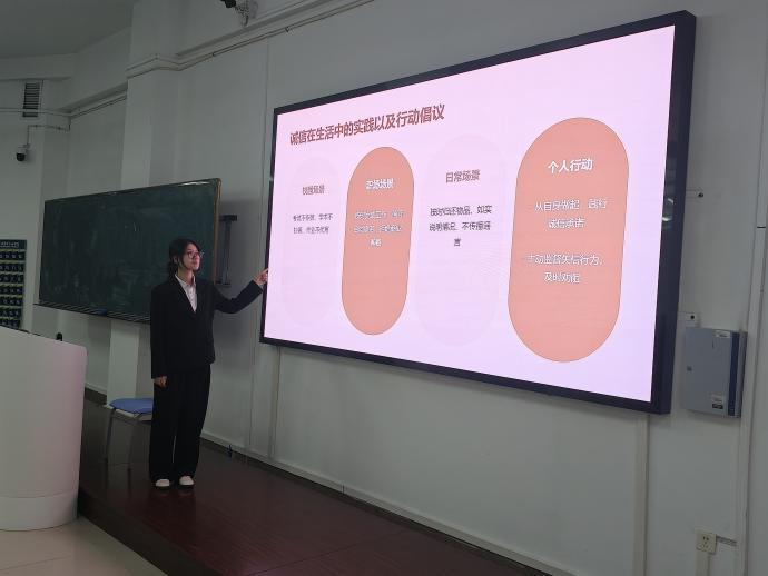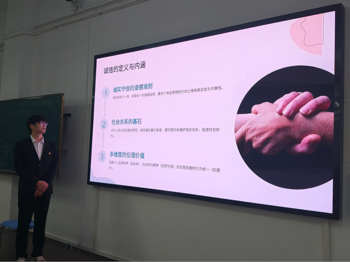 活动伊始,宣讲人针对不同的场景对如何做到诚信定心了概述。在校园场景中强调考试纪律,更将“诚信学习”理念延伸至日常学术行为,明确禁止抄袭、代写、伪造实验数据等行为。在职业场景中表明,要做到按时完成工作,信守合同承诺等。宣讲人还讲述了身边讲诚信、懂感恩、励志成才的故事,通过真实案例向大家诠释了什么是诚信。通过一系列的宣讲,让诚信立身与感恩奉献的正能量在师生群体中引发强烈共鸣。