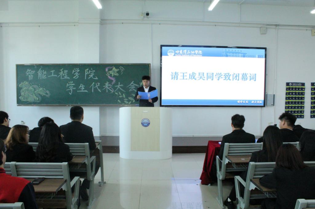 智能工程学院学生代表王成昊同学致《闭幕词》。学生干部们一致表示,在未来的工作中,他们将更加积极地发挥模范带头作用,坚定信念,追求真理,务求实效,脚踏实地地完成每一项任务。他们立志成为勇于创新、敢于实践的新时代青年,以实际行动树立榜样。