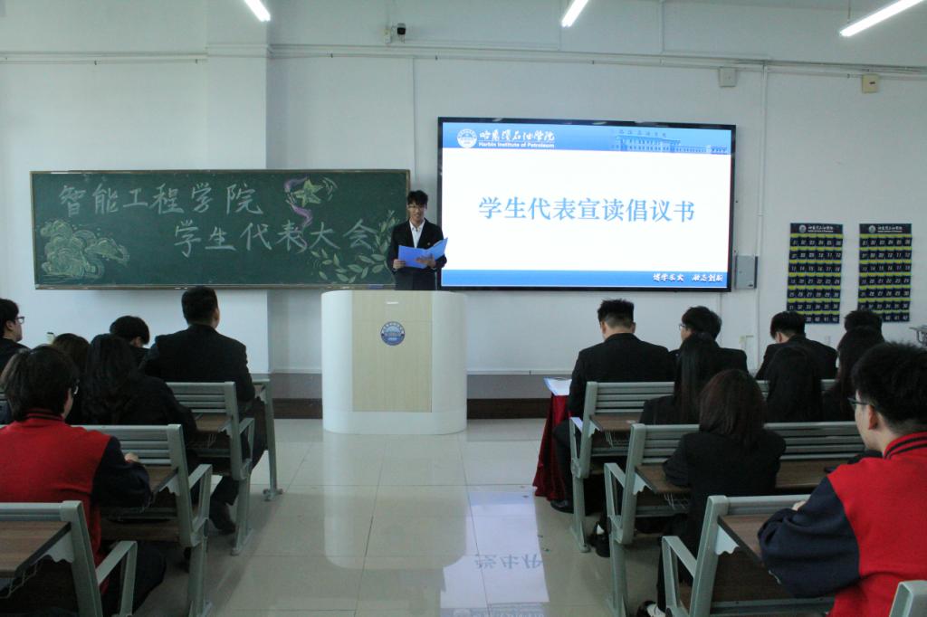 紧接着,智能工程学院学生代表王爽同学宣读倡议书,呼吁全体同学积极参加各项工作和和活动,为学院发展贡献力量。