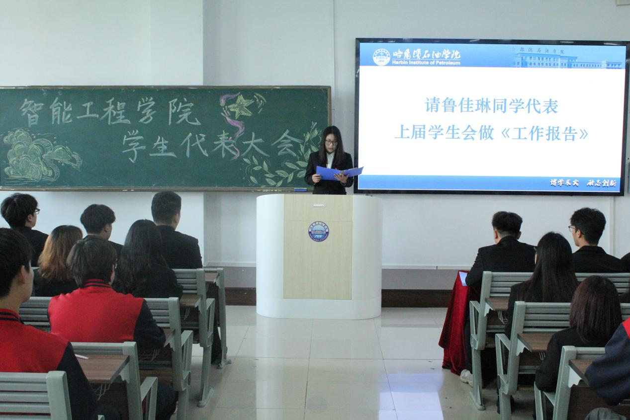 智能工程学院学生会执行主席鲁佳琳同学代表上届学生会做《工作报告》,全面、客观地回顾了一年来我院学生会工作内容,总结成绩,指出不足,并提出了今后的工作目标和主要任务,并表达了对学生会未来发展的美好期许。鲁佳琳同学的汇报让与会代表们对上届学生会的工作有了更全面地了解,同时也为新一届学生会的工作指明了方向。