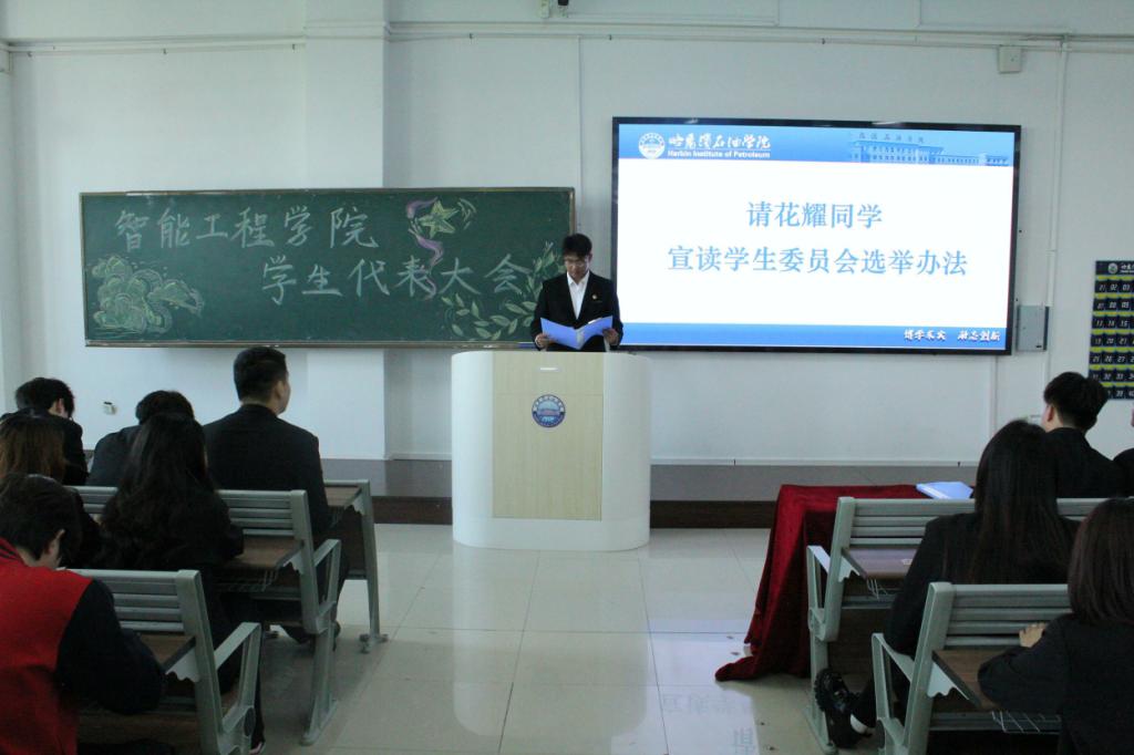 智能工程学院学生代表花耀同学宣读伟德bv国际体育智能工程学院学生会代表的产生和选举办法。