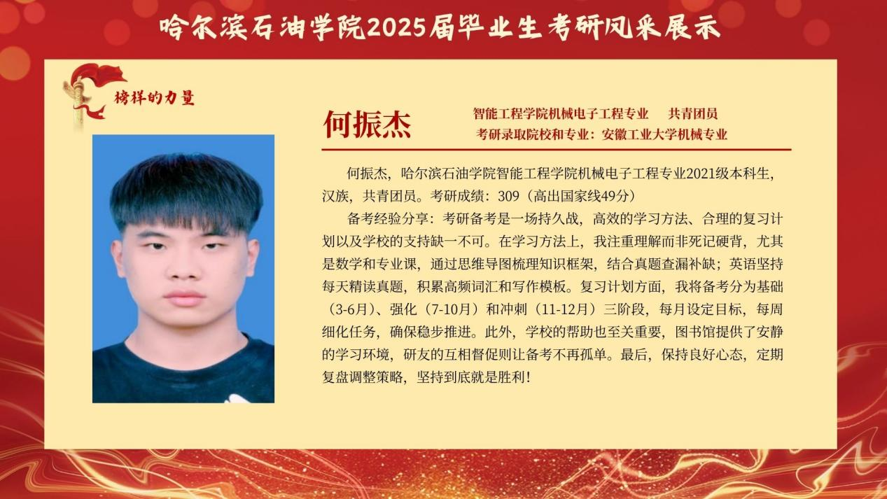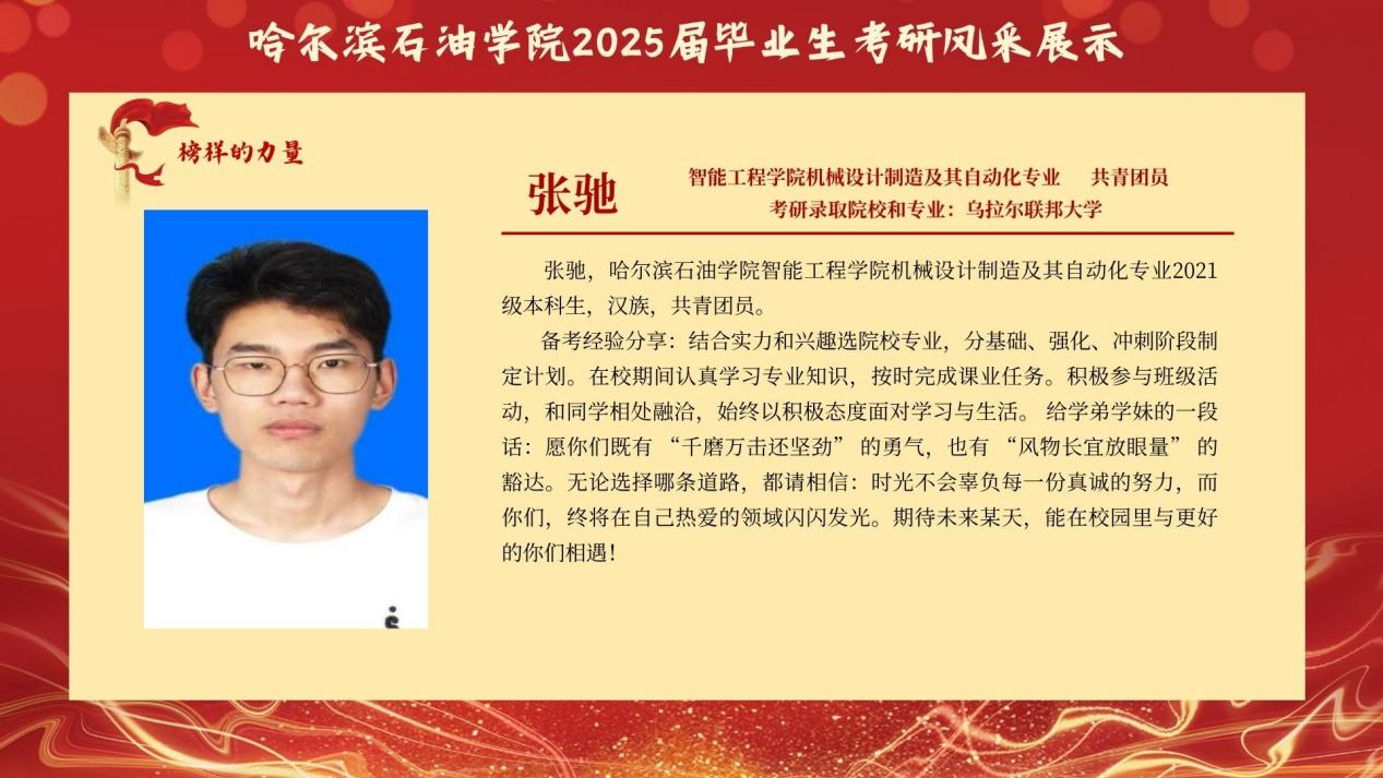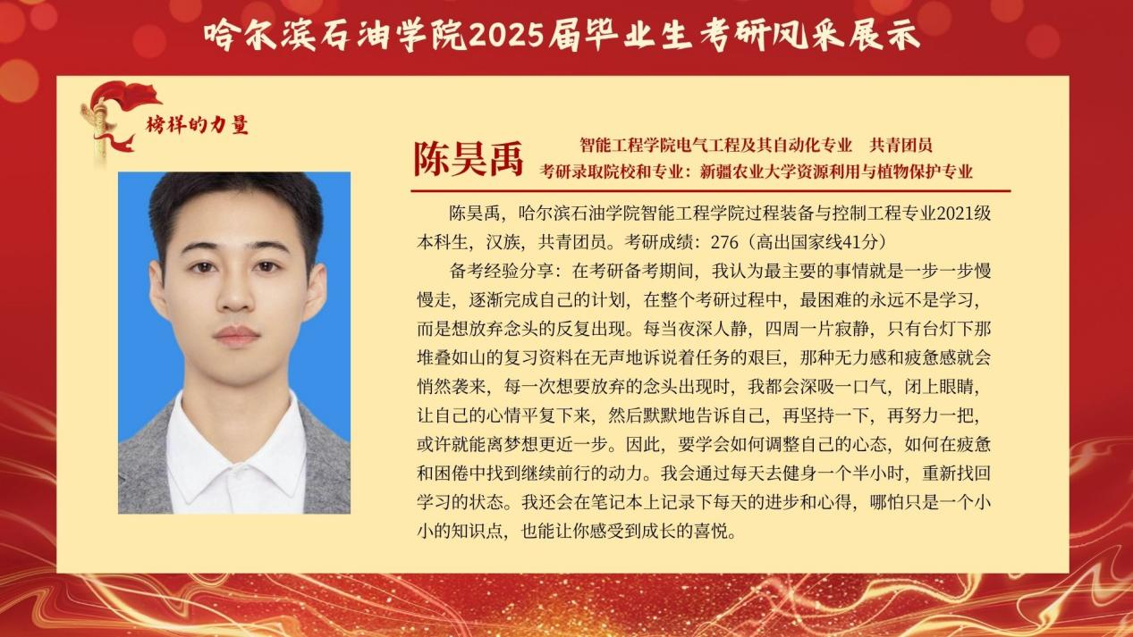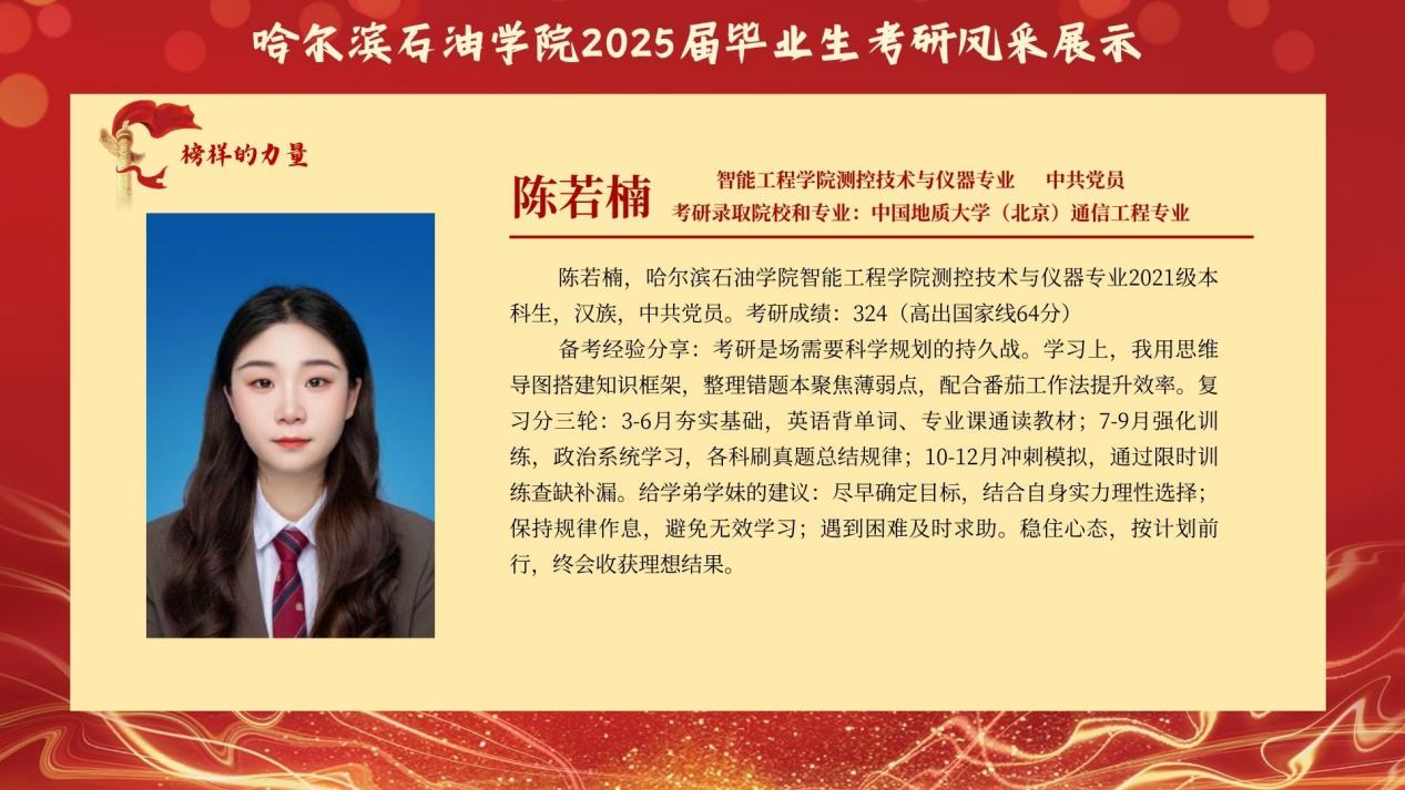 为传递“求知若渴、破壁攻坚”的考研精神,赋能更多学子逐梦“研途”,智能工程学院特别推出 “考研先锋风采展示”专栏。本次展示将全景呈现考研学子的奋斗轨迹:从图书馆的“破晓灯影”到实验室的“科研星火”他们将倾囊分享备考规划、院校抉择、压力疏解 等实战经验,更会揭秘“如何平衡课程与复习”的独家心法,为学弟学妹勾勒清晰的考研进阶图谱。此次风采展不仅是对考研先锋的礼赞,更寄望激励更多智能学子 以理想为帆、以坚持为桨,在学术探索的浪潮中勇立潮头,书写属于自己的“研途”华章!