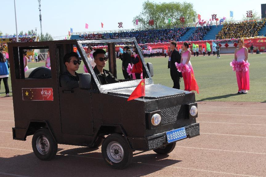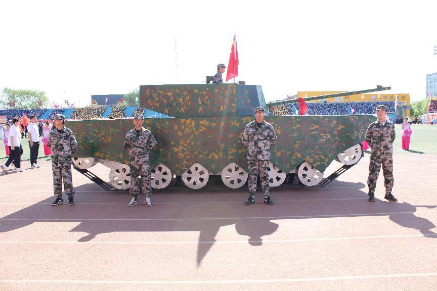 伴随着激昂豪迈的运动员进行曲,智能工程学院代表队昂首阔步地向主席台走来,院牌在骄阳下高举,旗帜在暖风中飘扬,方队前方的坦克、火箭、新能源汽车是专业特色与爱国热情的完美结合,老师们的脸上洋溢着亲切的笑容,同学们神采奕奕,喊着响亮有力的口号,展现了智能工程学院学生们朝气蓬勃的青春活力和自信昂扬的精神风貌。