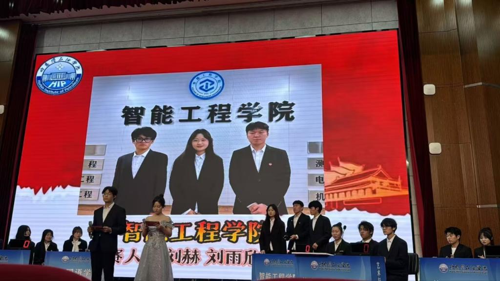 本次学生手册知识竞赛决赛共设三个环节:必答题、情景找茬题和风险题。由我院三名学生代表刘赫、刘雨欣、王浩参加。在每轮答题环节,我院参赛选手充分运用所掌握的知识,每题必争、每分必夺,在一轮轮你追我赶的答题比拼中,拿下第一轮满分。情景找茬题环节中,选手们眼疾手快、通力配合,再次获得满分,活动现场气氛热烈、精彩纷呈。最后风险题环节紧张刺激,考验了选手的临场决策能力。经过激烈的角逐,最终,智能工程学院代表队凭借出色的知识储备和精彩发挥获得一等奖。