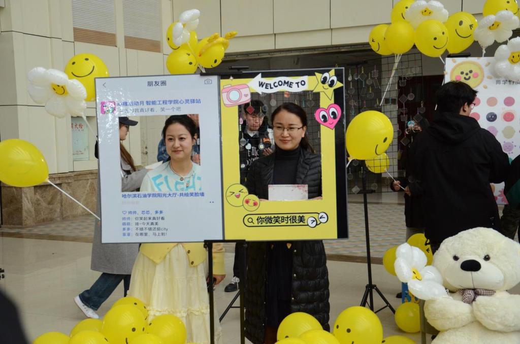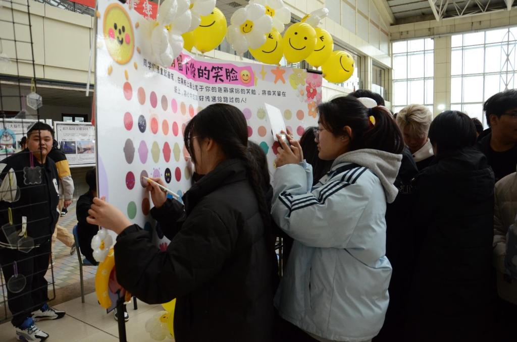 智能工程学院展区活动形式丰富多元,共绘笑脸墙、手绘笑脸挂件、微笑拍照打卡等项目,充分调动了师生们的积极性。同学们手持画笔,在墙面上勾勒出代表内心快乐的灿烂笑脸,让整个展区充满了欢声笑语。一位即将踏上实习征程的同学感慨:“最近,就业压力让我焦虑不堪。但参与这次活动,我暂时摆脱了烦恼。看到周围温暖的笑容,我的心情瞬间变好,我也要将这份微笑传递给身边的人。”