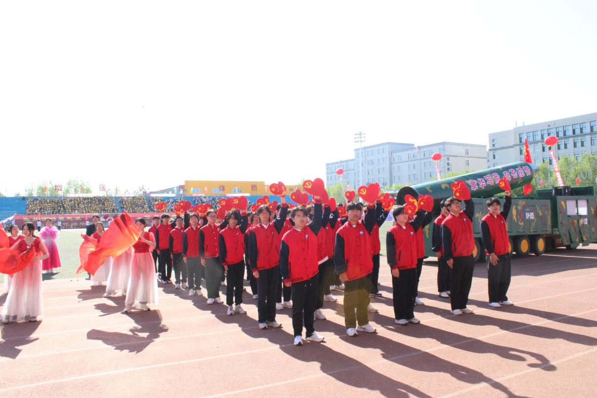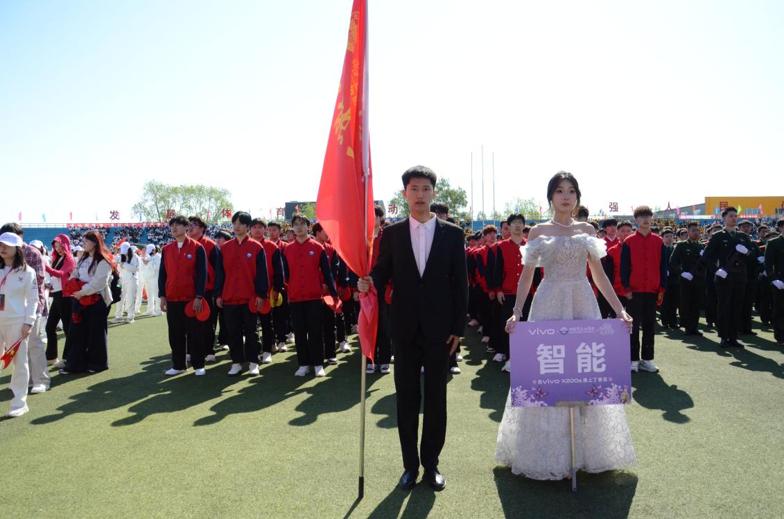 在激昂奔放的运动员进行曲声中,智能工程学院代表队昂首挺胸,步履坚定地向主席台迈进。阳光下,院牌高举,熠熠生辉;旗帜在温润的春风中猎猎作响。队列前方,导弹车威武壮观,象征着专业特色与爱国情怀的深度融合。教师们面带慈祥的笑容,学生们神采飞扬,高喊着铿锵有力的口号,尽显智能工程学院学子们充满活力的青春气息和自信满满的精神面貌。