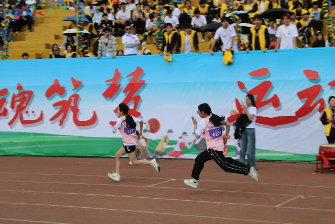 在女子400米比赛过程中,我院24级李响、曲芯可分别斩获第一名和第二名的佳绩,均打破了校运动会记录。