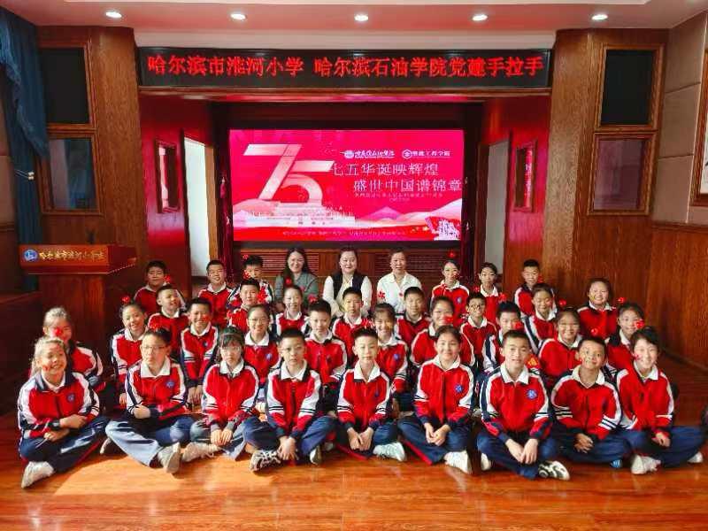 为热烈庆祝新中国成立75周年,营造浓厚的节日氛围,激发师生的爱国情感。回顾新中国的发展历程,展示国家的伟大成就,增强学生的民族自信心和自豪感。 通过丰富多彩的活动,培养学生的团队合作精神、创新能力和实践能力。加强师生之间的交流与互动,增强学校的凝聚力和向心力。智能工程学院晨曦党团员社会实践服务团于9月29日走进淮河小学,开展了一场主题为“七五华诞映辉煌,盛世中国谱锦章”的国庆宣讲活动。本次活动由智能工程学院学生第一党支部书记吕博萱带领晨曦党团员社会实践服务团成员参加。