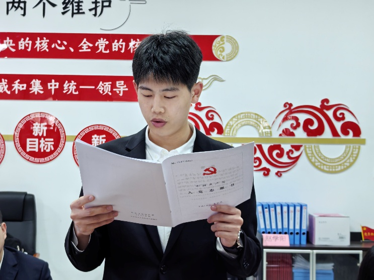 支部书记代表学生党支部对新接收的预备党员表示祝贺,也殷切希望每一位同志都能时刻牢记入党时的铮铮誓言,始终以饱满的政治热情和强烈的责任担当投入学习工作中,真正做到学以致用,服务社会,在砥砺奋进中坚守理想信念,在知行合一中彰显先锋本色。