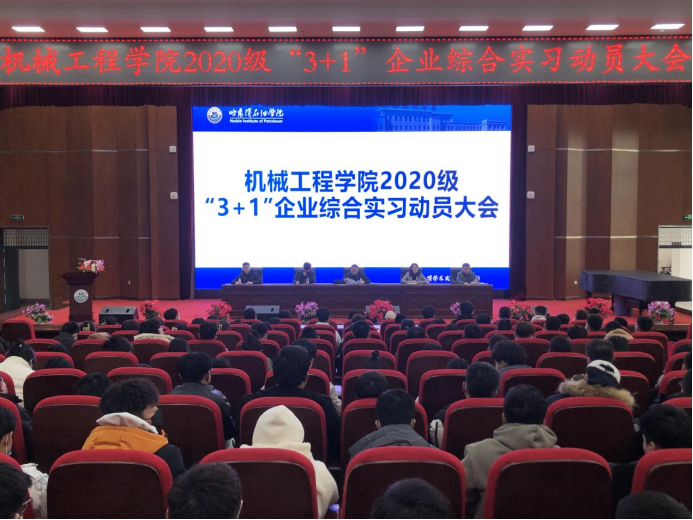 为切实做好2020级学生“3+1”企业综合实习动员工作,根据《伟德bv国际体育校企协同育人“3+1”企业综合实习实施方案(试行)》文件要求,进一步加强学生对所学知识和技能进行实践运用、总结和深化,引导学生做好实习前的各项准备,推进实习工作的顺利开展,培养学生专业综合能力,使其适应时代发展,并不断完善职业意识,使学生进一步明确实习的意义,2023年3月7日12时,机械工程学院在图书馆报告厅召开“3+1”企业综合实习动员大会。出席会议的有机械工程学院院长王俊发、党总支书记苏永彬、副院长韩蓉、院长助理李军,辅导员迟航、机械工程学院2020级全体学生。会议由辅导员迟航主持。