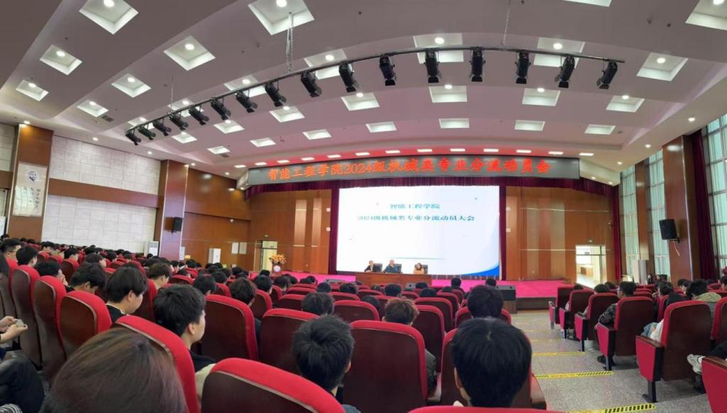 4月15日下午,智能工程学院2024级机械类专业分流动员大会在图书馆三楼报告厅召开。院长王俊发、党总支书记吴东爽、副院长韩蓉等领导出席会议,大会由副院长韩蓉主持,2024级机械类专业全体学生共同参与。