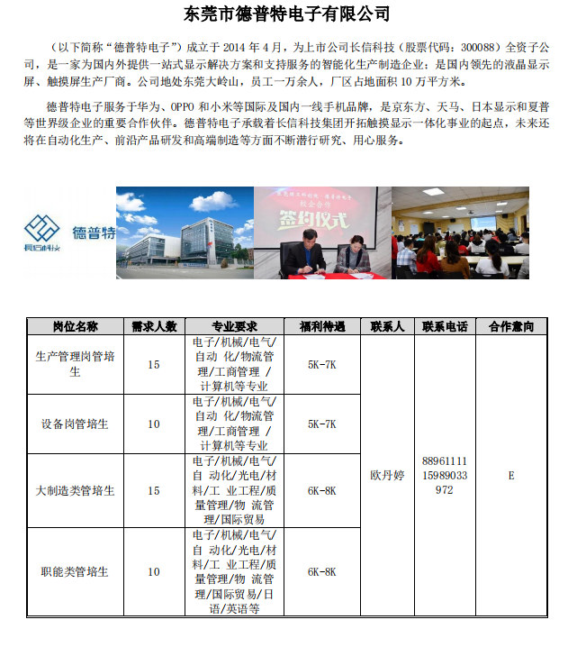 东莞市德普特电子有限公司招聘公告