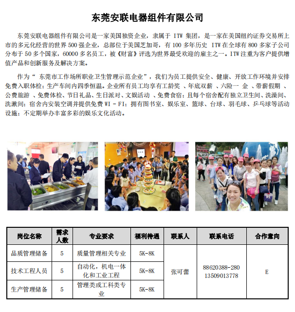 东莞安联电器组件有限公司招聘公告